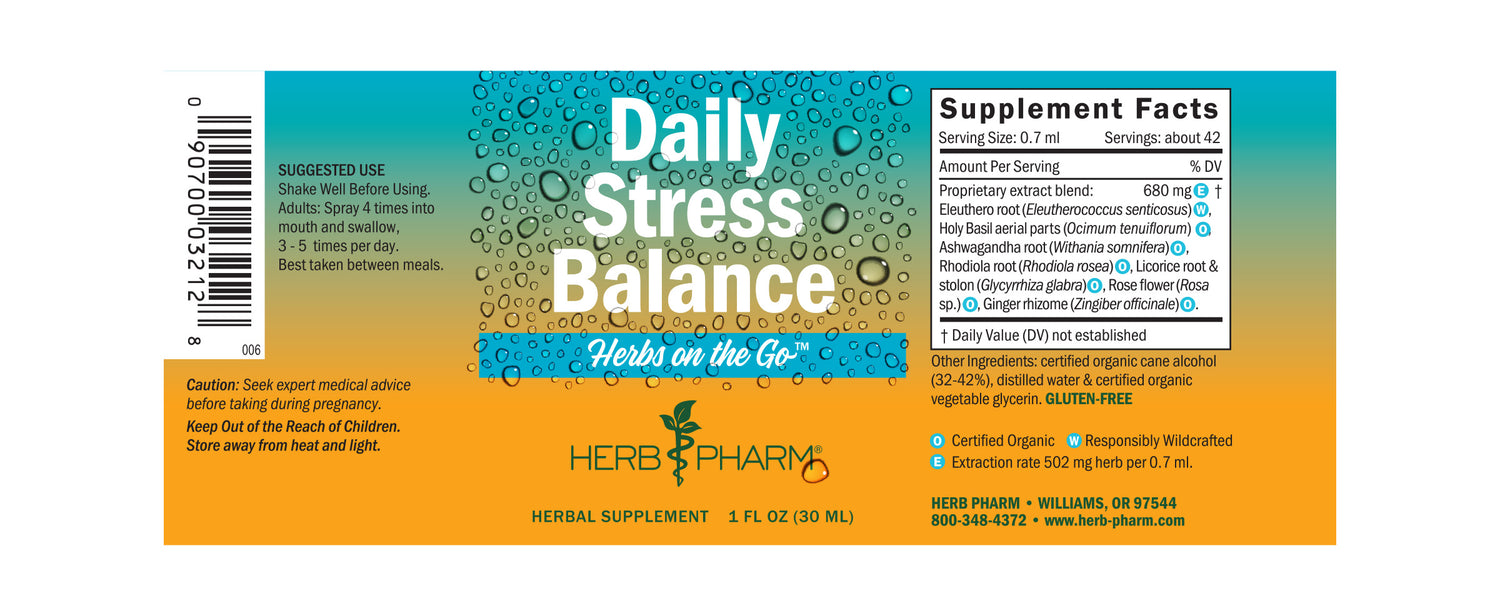 Herbs on the Go: Daily Stress Balance comes in an intuitive spray format, making it easier to include herbs in your healthy everyday habits. It includes Eleuthero extract prepared from the roots of Eleutherococcus senticosus shrubs which are responsibly wildcrafted in their native habitat.