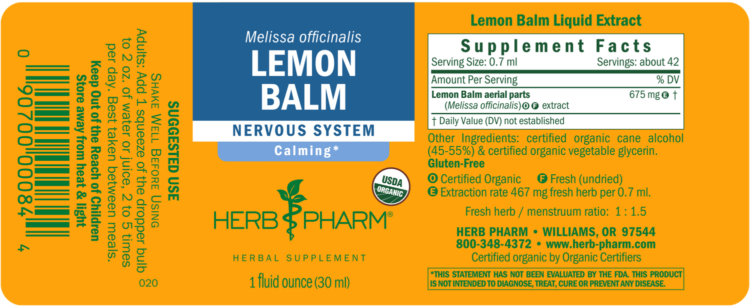 We prepare our Lemon Balm extract from the fresh aerial parts of Melissa officinalis plants. We grow the herb on our own Certified Organic farms in southern Oregon. Then we extract Lemon Balm fresh.