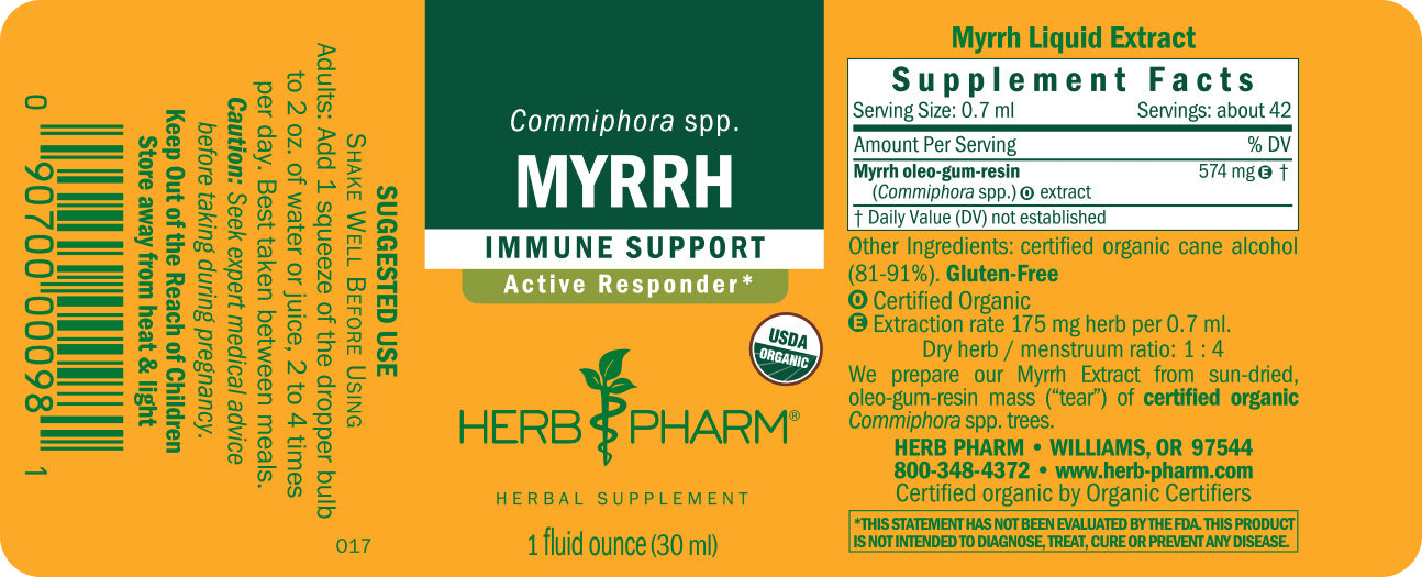We prepare our Myrrh extract from the sun-dried Certified Organic oleo-gum resin of Commiphora spp. trees from eastern Africa. The resinous sap is harvested from incisions in the trunk, allowing the tree to continue to grow and stay healthy.