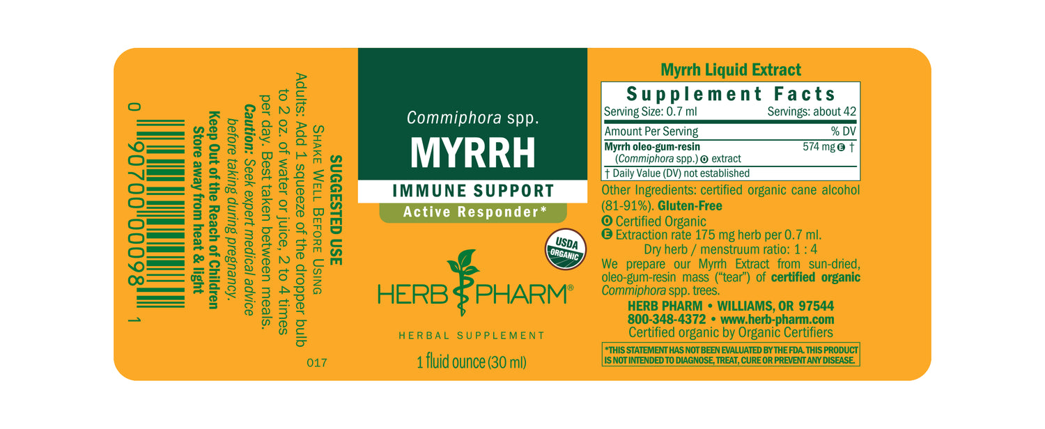 We prepare our Myrrh extract from the sun-dried Certified Organic oleo-gum resin of Commiphora spp. trees from eastern Africa. The resinous sap is harvested from incisions in the trunk, allowing the tree to continue to grow and stay healthy.