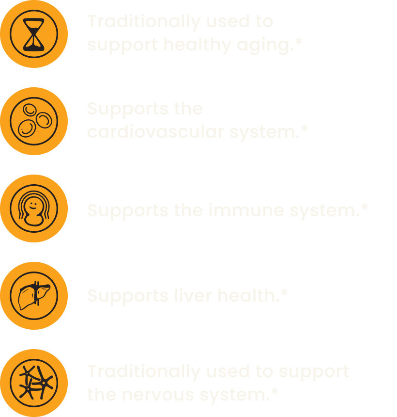 Reishi is our North Star mushroom, which is why you’ll find it in every Mushroom Wellness product. It has a long history of traditional use dating back over 2,000 years! In Japanese, the name “Reishi” also translates to “10,000-year mushroom.”